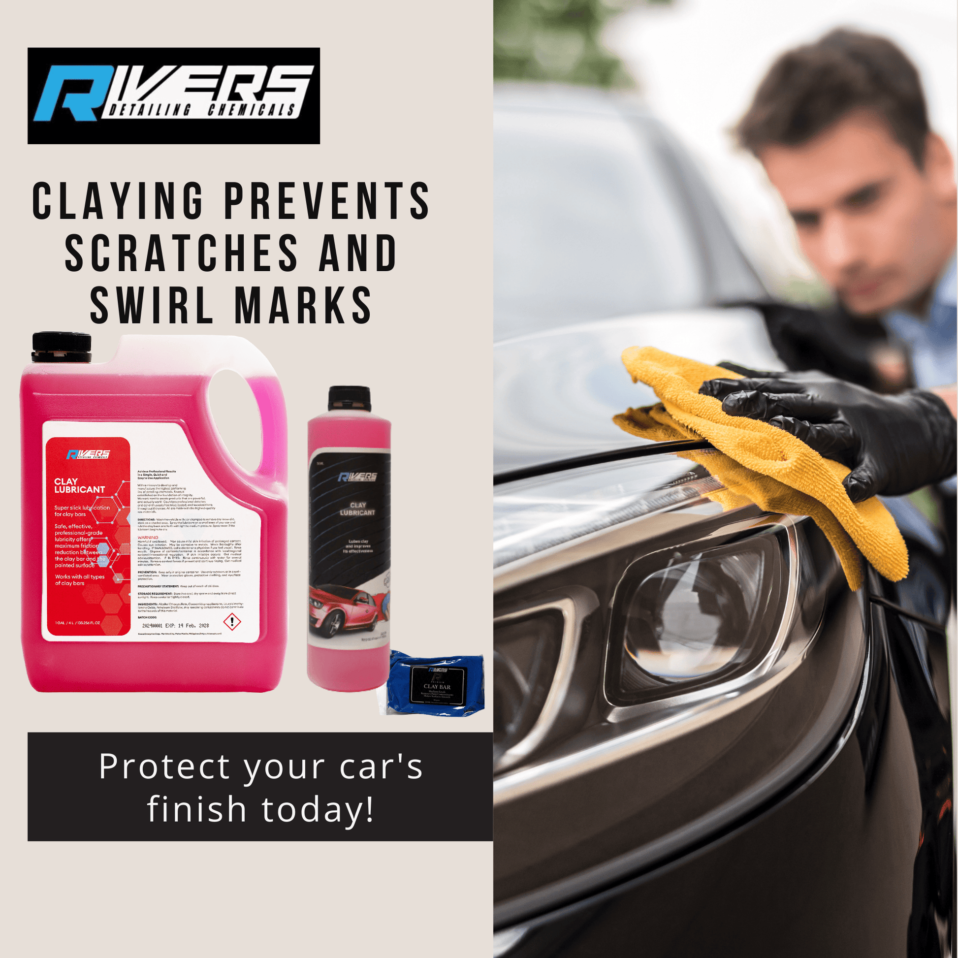 Rivers Clay Bar 100g and Clay Lubricant 500 ml / 4 Liters